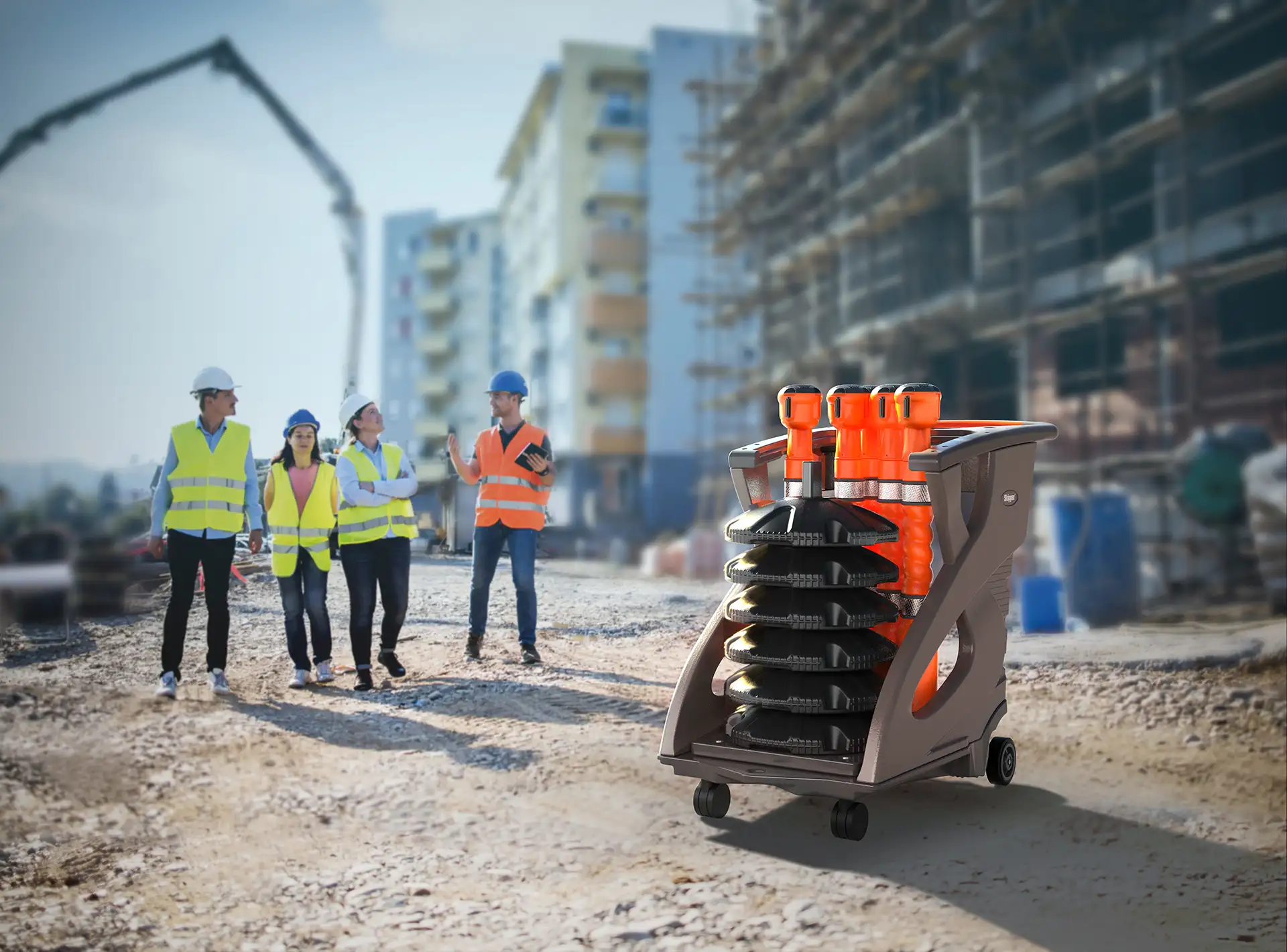 Designed for all your barrier transportation requirements, this modular and sustainable cart caters for a mulitude of workplace safety barrier systems including cone barriers, retractable and expandable barriers, industrial barriers, crowd control barriers, & belt barriers.