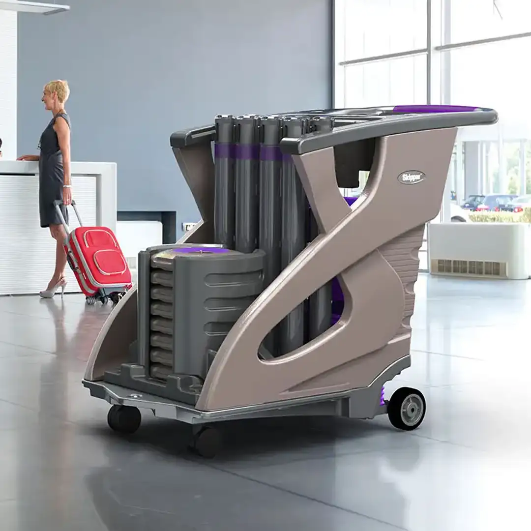 The Skipper Unicart has been designed with unparalleled modularity, versatility and value. Once you have used the cart to deploy your Skipper products , you can quickly transform it into a smart and easy to manoeuvre janitoral trolley.