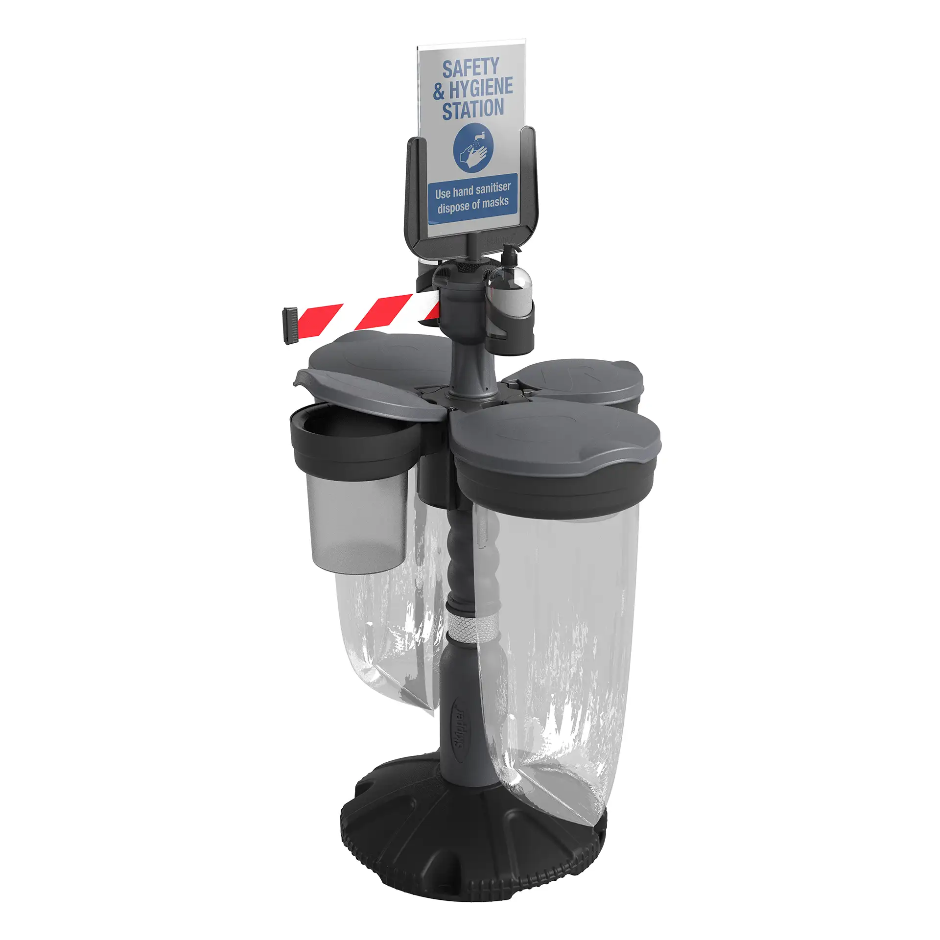 The Safety Station 3 is easy to assemble and looks professional in any environment helping to encourage the use of PPE and hand sanitisation for staff and customers alike.