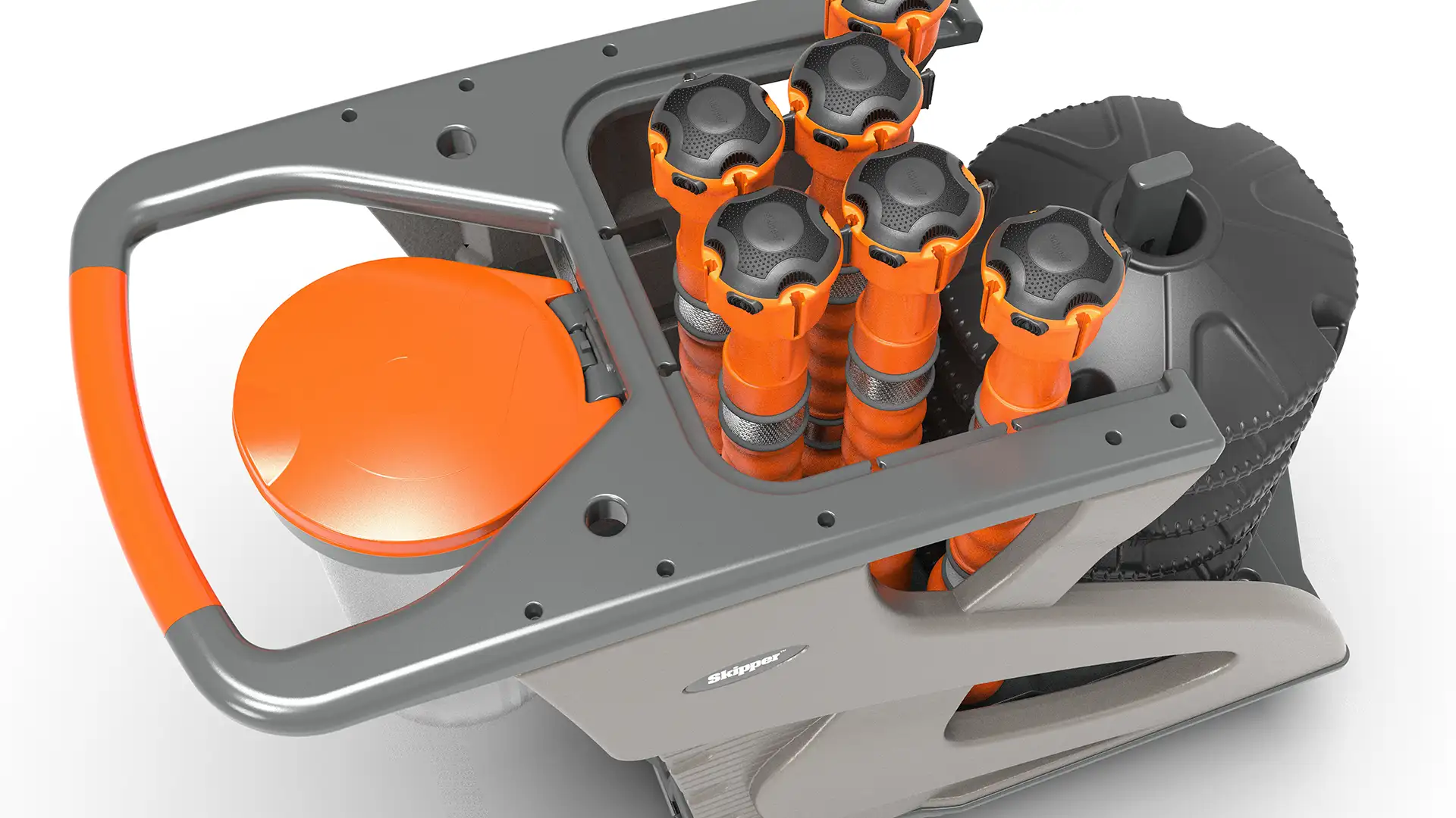 A. The Skipper Unicart can quickly transform into a janitorial trolley with our optional accessory kit. You can also add a Skipper waste bin via a clip on the rear